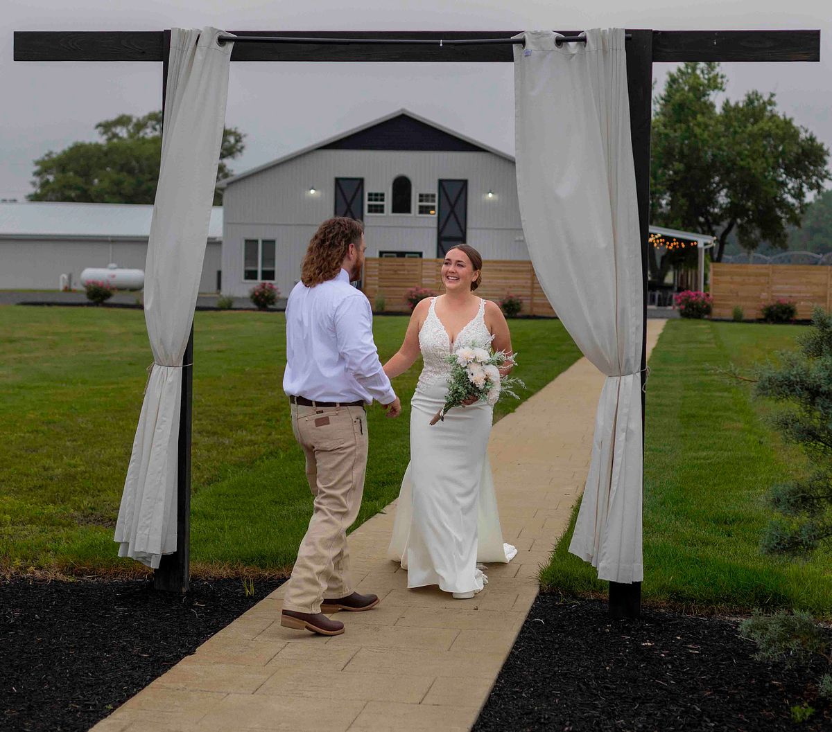 Chris and Bethany were beaming with love and happiness as they made their way down the aisle after becoming husband and wife. They took a moment to recreate a photo from their engagement shoot, which turned out to be an amazing idea and such a perfect moment to capture.