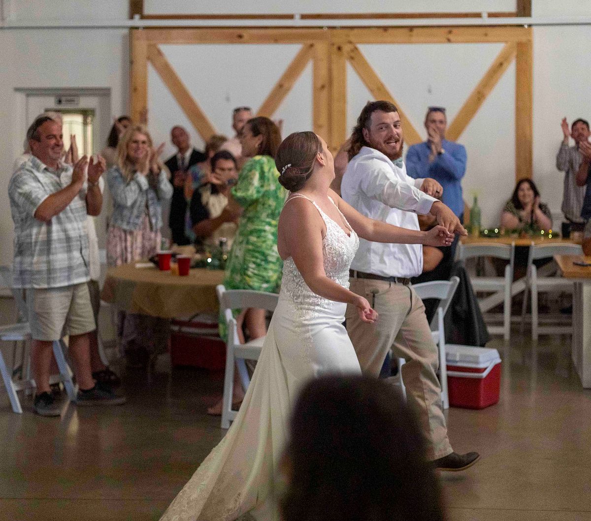 The couple decided to skip the traditional cake-cutting ceremony. After introducing the wedding party to the guests, Bethany and Chris went straight into their first dance. Dinner was served soon after. Once dinner was over, everyone was invited to hit the dance floor and the party started in full swing.