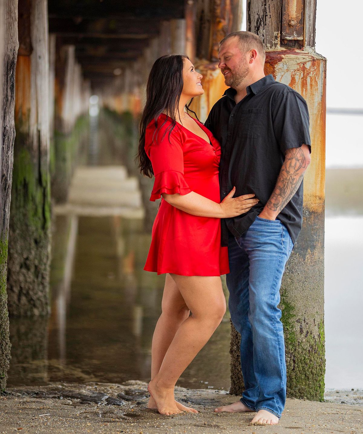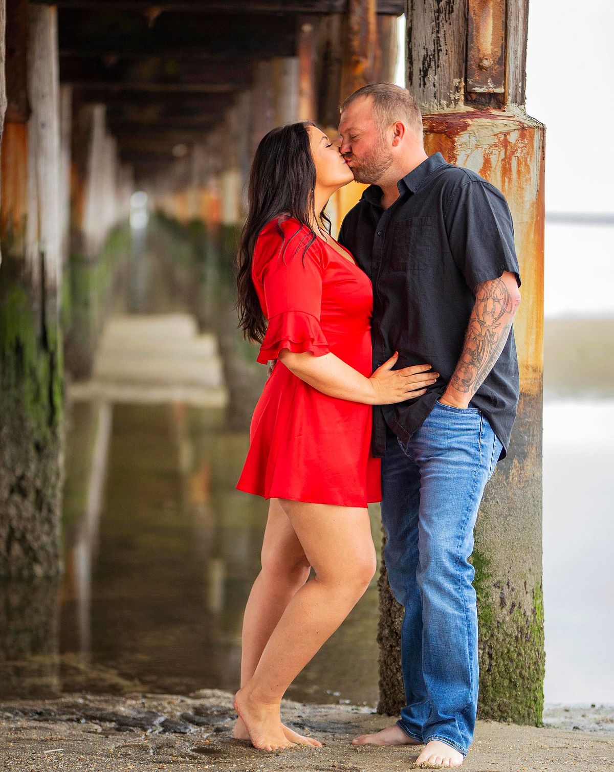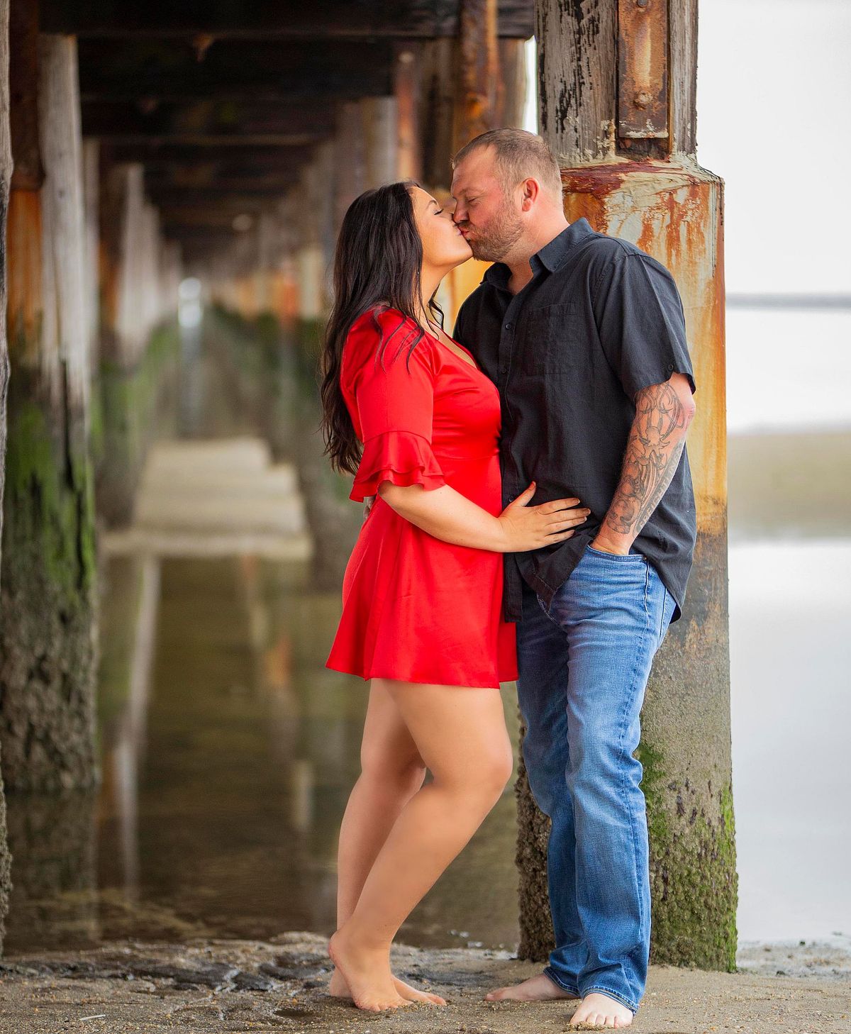 Yet, one of my favorite locations is under the pier. The linear graduation and waves make for exciting photos that are different from the usual engagement photos.