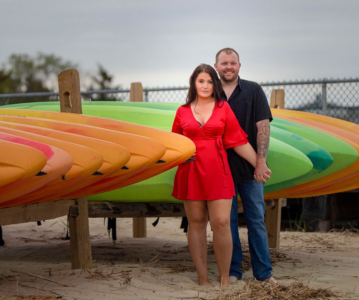 Once we are at the beach, the colorful stacked kayaks are also fun for the couple to pose in front of.