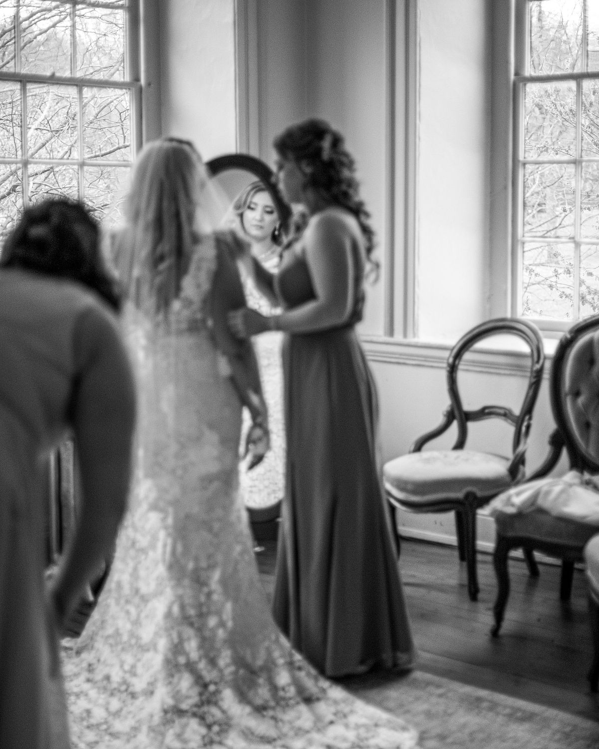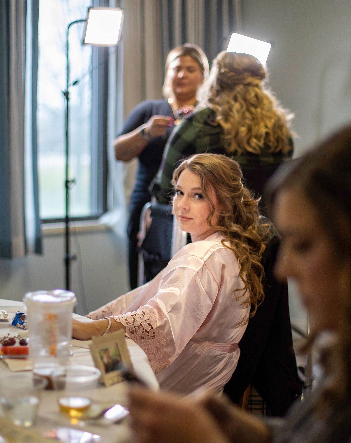 Upon my arrival at the bridal suite on the wedding morning, the bridesmaids and Alexis had already commenced the pre-wedding rituals. I always relish this time before the wedding ceremony. The bridal suite is bustling with excitement, and there is an organized chaos that only a few can truly appreciate. While Alexis got prepped for her big day, I had the privilege of capturing some beautiful moments of her while she got her hair and makeup done