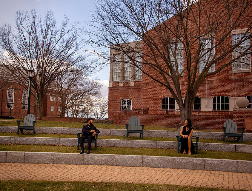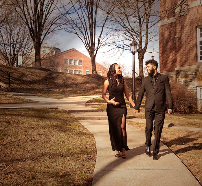 Martha and Ryan's engagement session at  McDaniel College was filled with tons of sunshine and also very cold temperatures. Of course, this is to be expected when you plan a photo shoot in January. Martha wanted to use some of the engagement photos for the invitations, which should be sent out at least 6 months prior to the wedding date. Since the wedding is in October we wanted to make sure we had the shoot in the bag with plenty of time to get the photos to the printer. Both Martha and Ryan had time off work for Martin Luther King's holiday, so the three of us kept our collective finger's crossed that the weather would be nice enough to take photos and that we wouldn't have to reschedule.