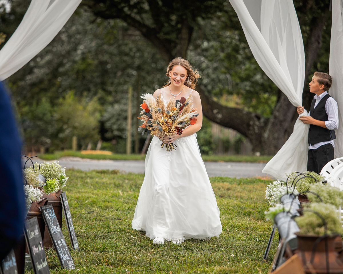 The ceremony itself was held under the shade of a large maple tree, its sprawling branches providing a natural cathedral. Guests, a mix of local friends and family who had traveled from afar, filled the antique wooden benches. As Alexis walked down the aisle, escorted by her beaming father, Jonathan’s eyes lit up. Their vows were heartfelt and personal, filled with promises of adventure and unwavering support. The exchange of rings, simple bands that symbolized their commitment, felt deeply significant.