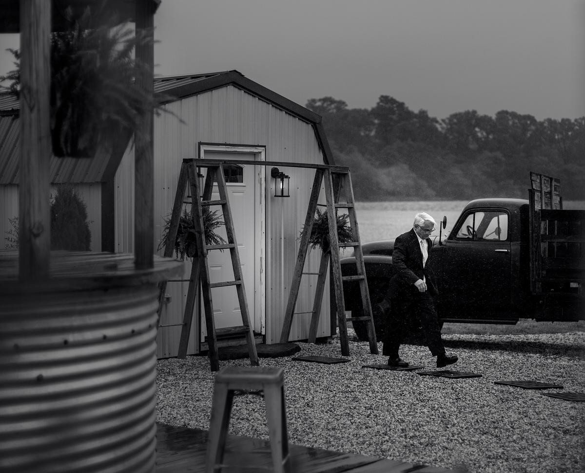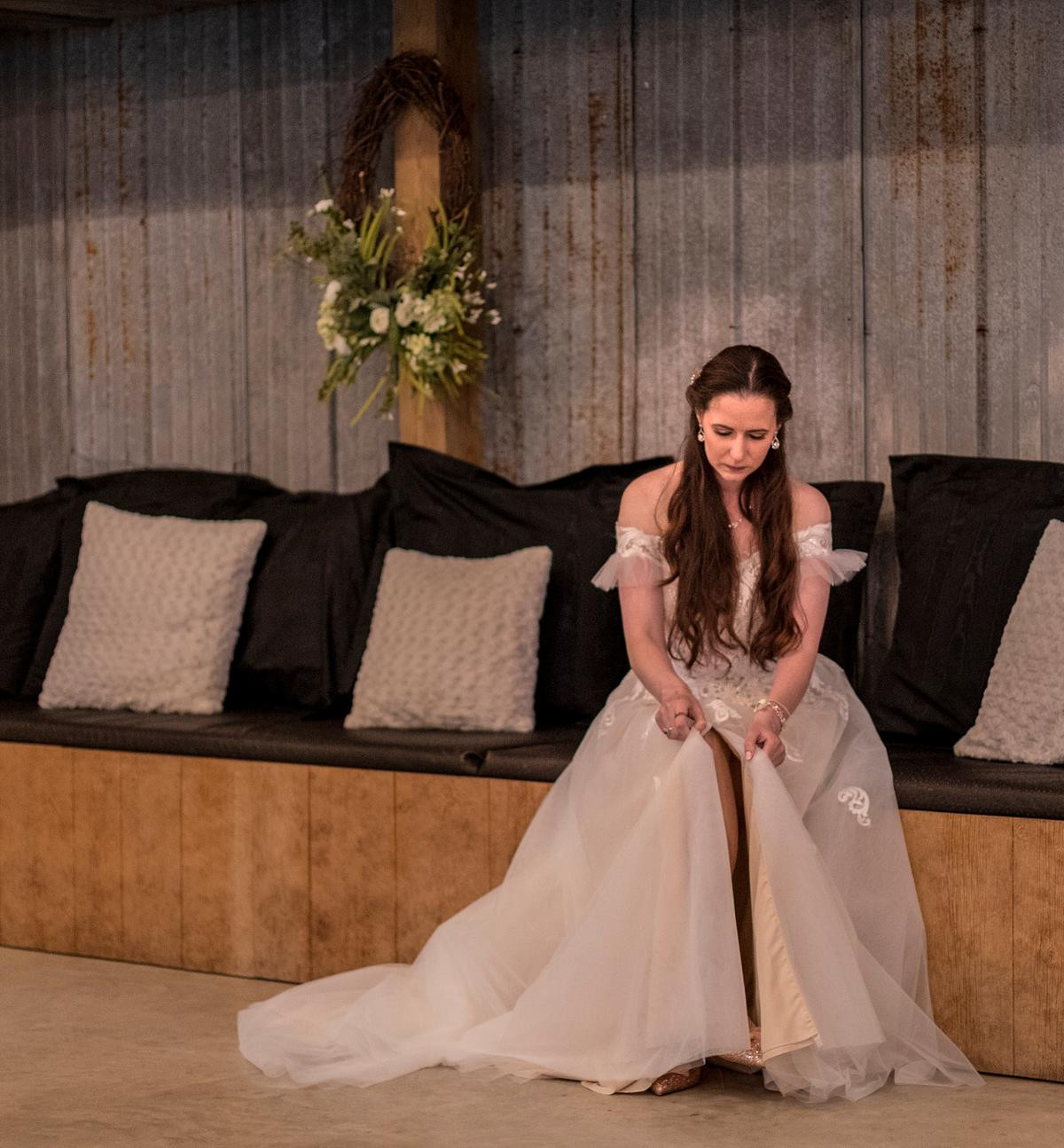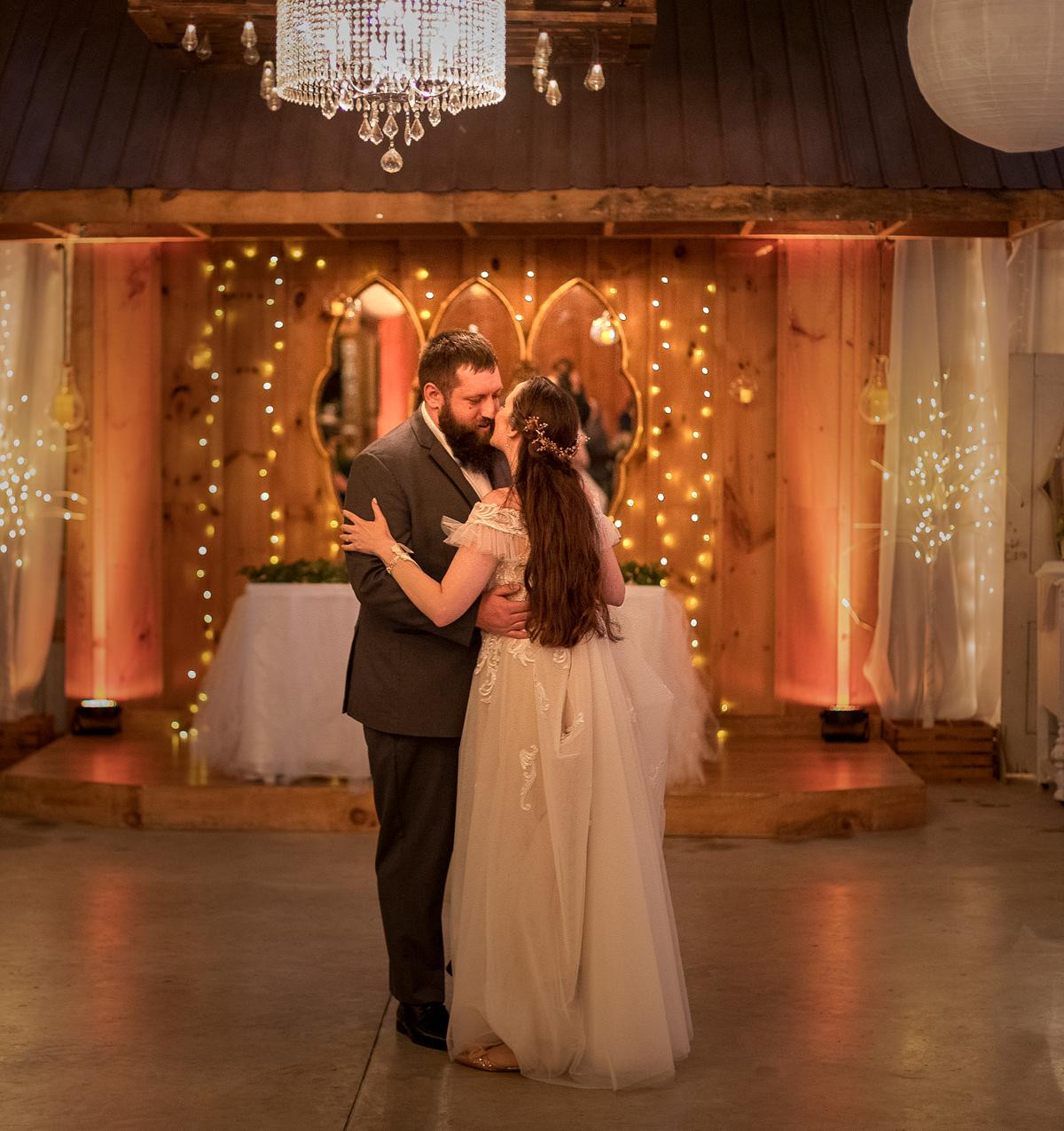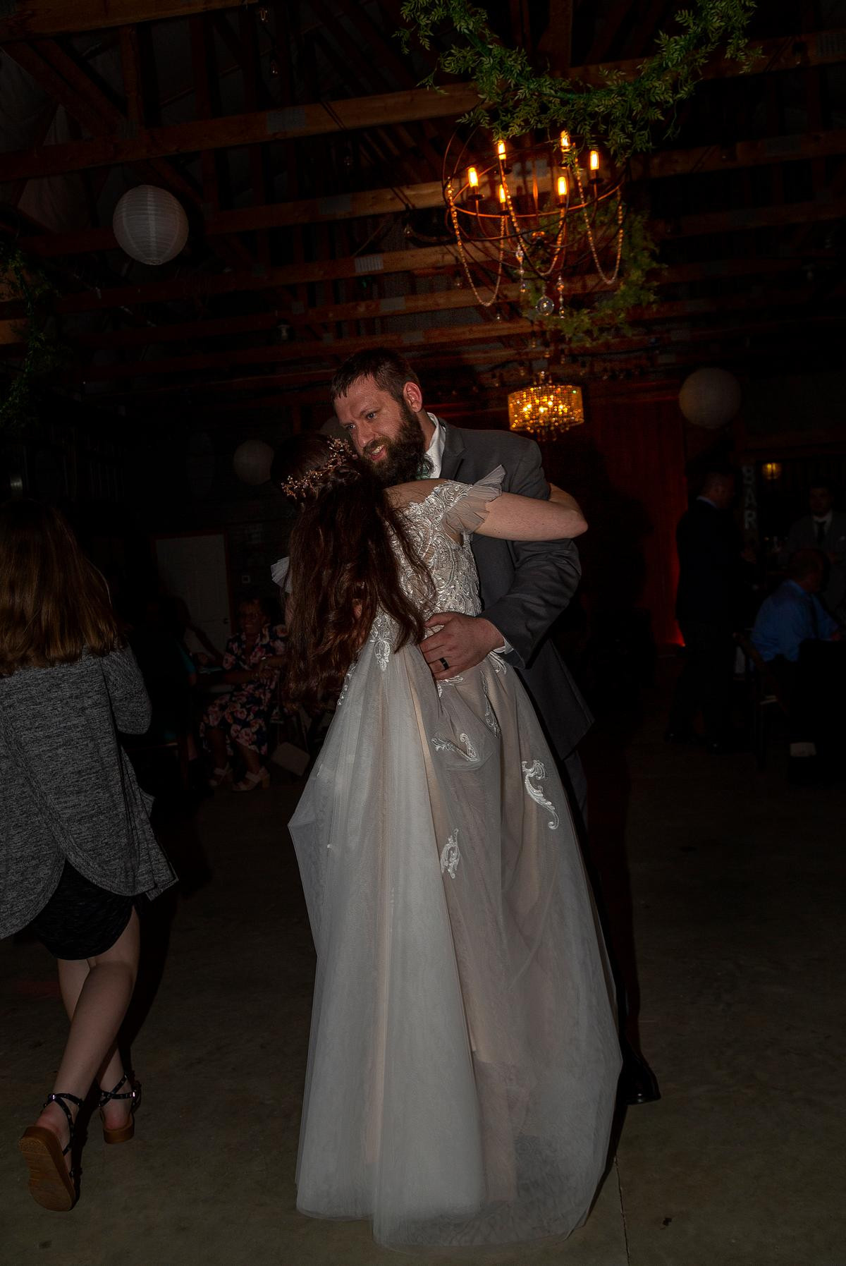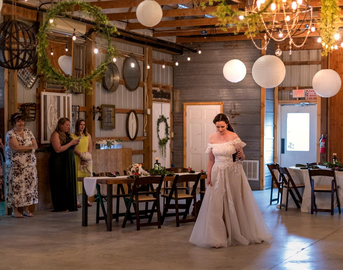 After the ceremony, I photographed the family photos inside the chapel, and then the wedding party moved into the big barn for the reception. I kept an eye on the weather in hopes to have a few minutes with Sam and Michael outside for more photos but it wasn't meant to be. The storm that brewed all morning long unleashed its fury on us and washed out all hopes for photos outside.Â
