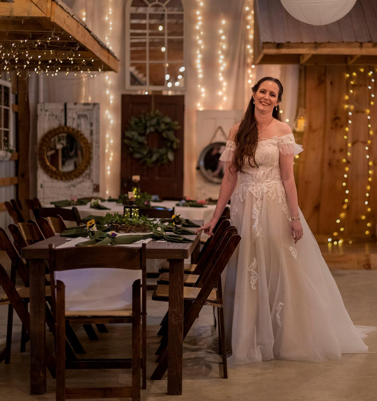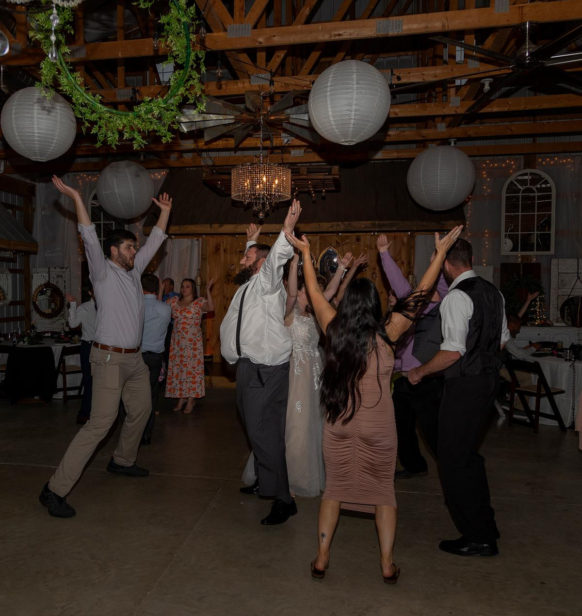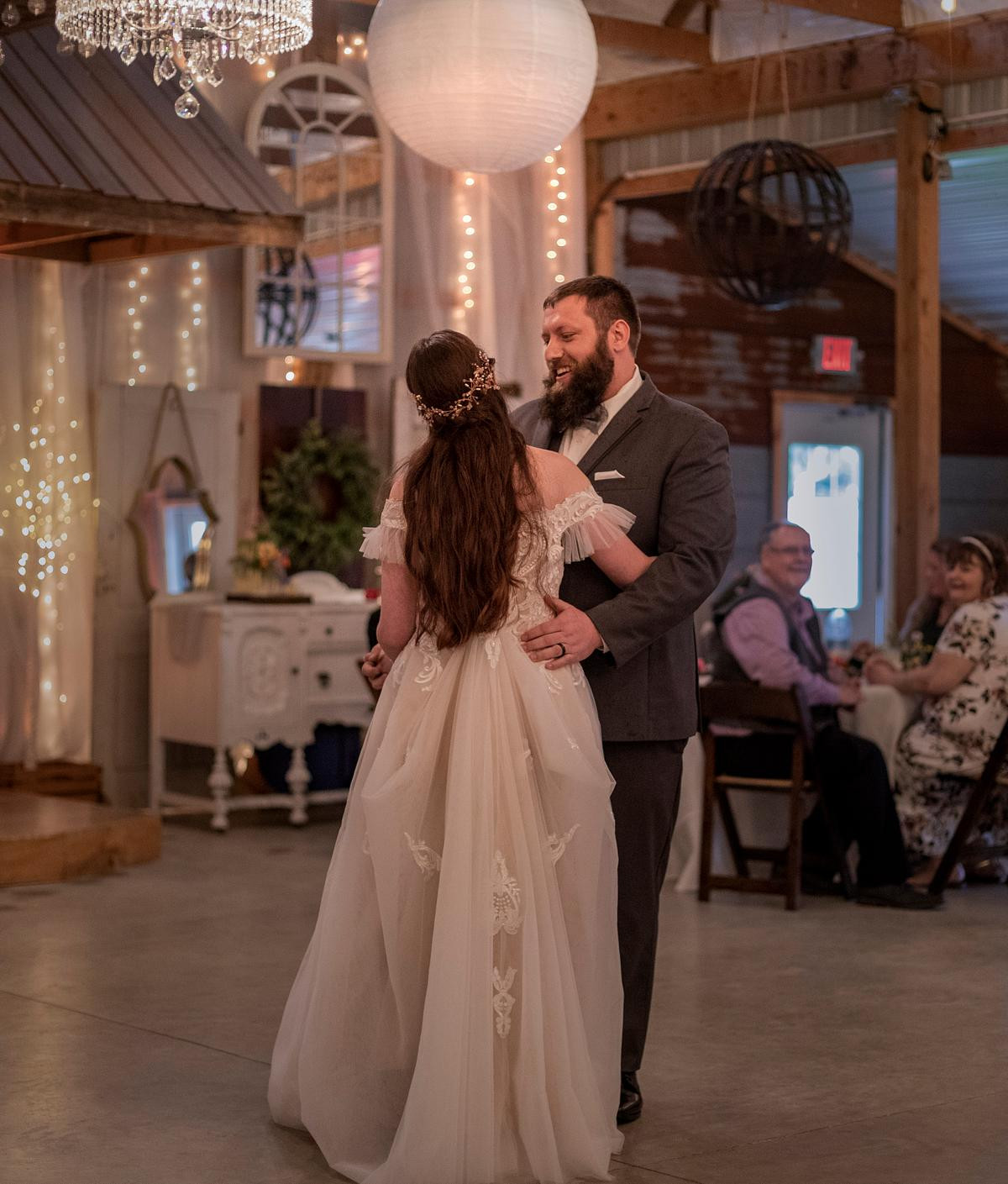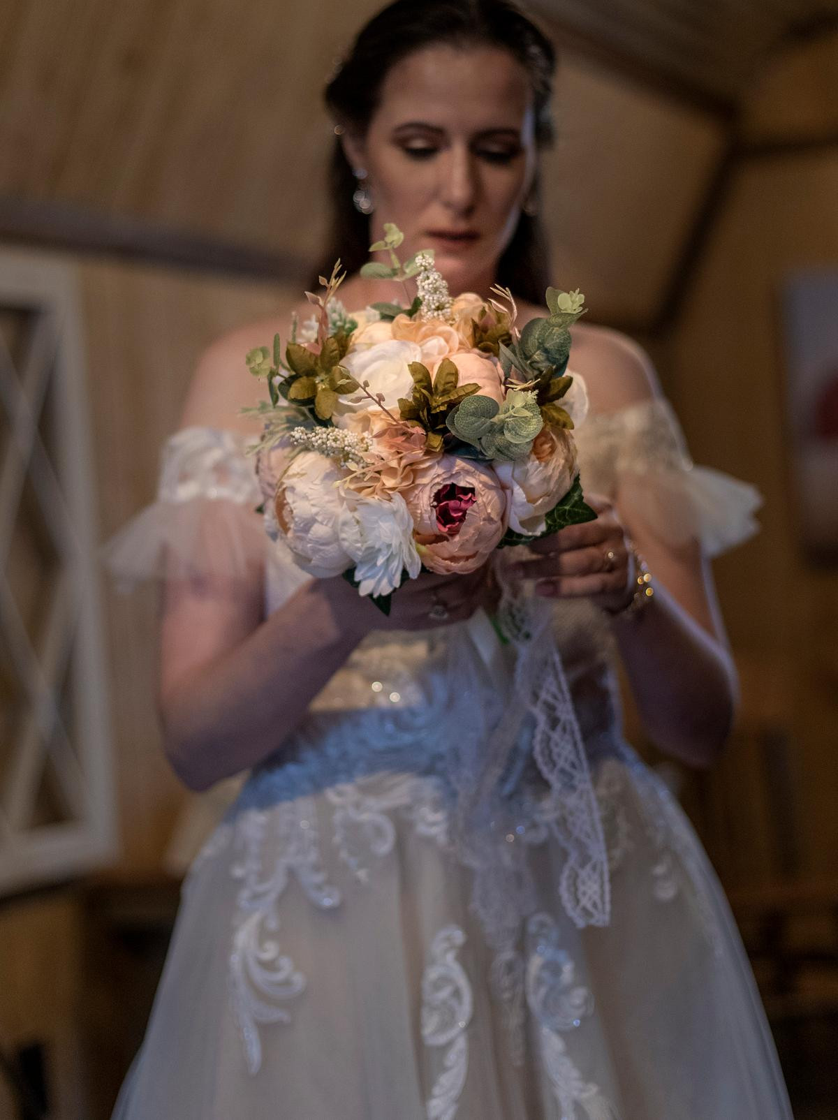 After the ceremony, I photographed the family photos inside the chapel, and then the wedding party moved into the big barn for the reception. I kept an eye on the weather in hopes to have a few minutes with Sam and Michael outside for more photos but it wasn't meant to be. The storm that brewed all morning long unleashed its fury on us and washed out all hopes for photos outside.Â