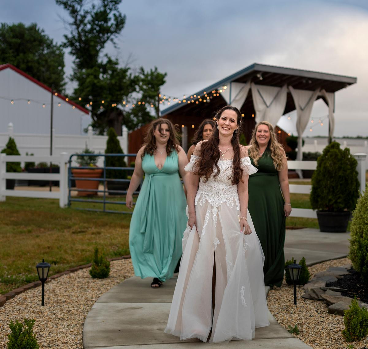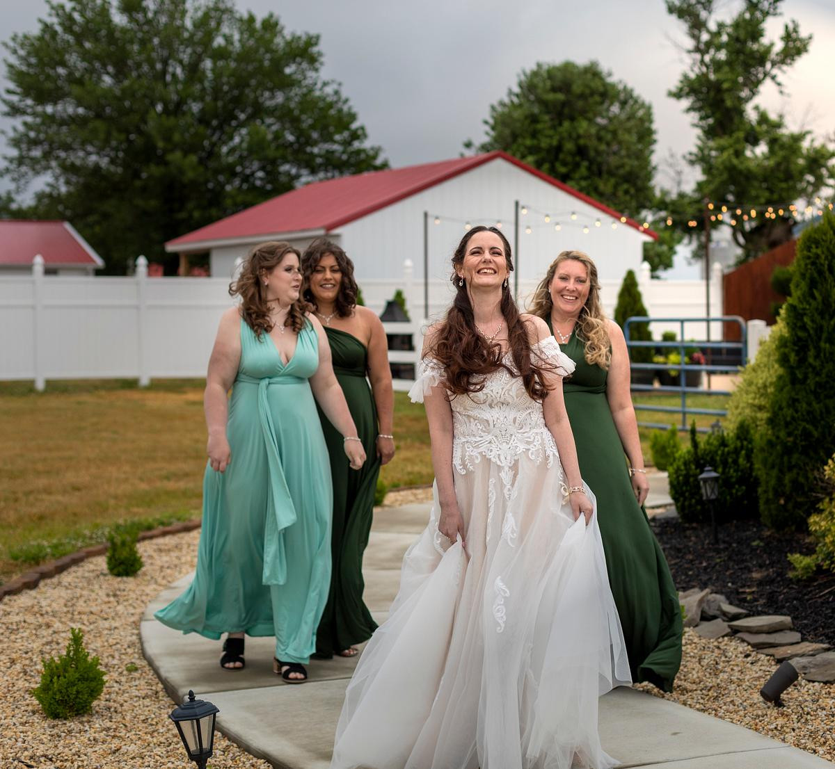 Like many wedding venues, the owners of Chickberry Farms made sure that a wedding photographer had several different locations for photo opportunities available. It makes it nice when you get to a location and part of your job is already done for you. Sometimes I have to wander the grounds trying to figure out where to take the bridal party for a great background. Especially golf courses can be tricky. The grounds look beautiful but one is not allowed to venture far because of the danger of a golf ball going wild. I don't play golf so I don't know what the correct verbiage is for a mis-hit golf ball. Yet, I am sure you can picture a bridal party out on the course, ducking their heads because a golfer had one too many libations.