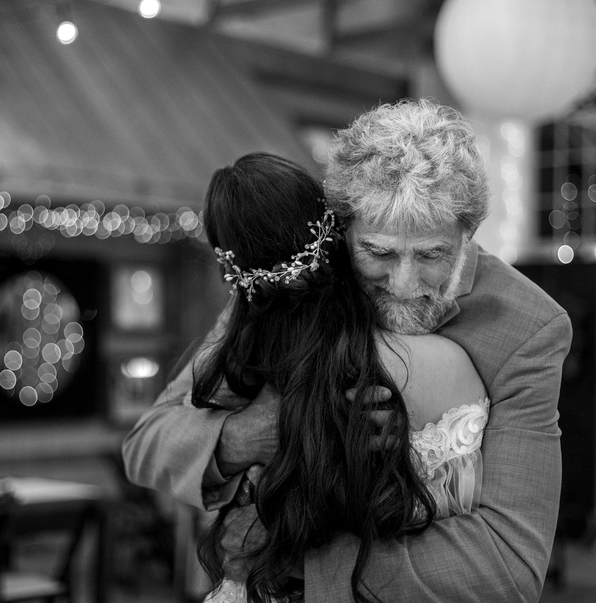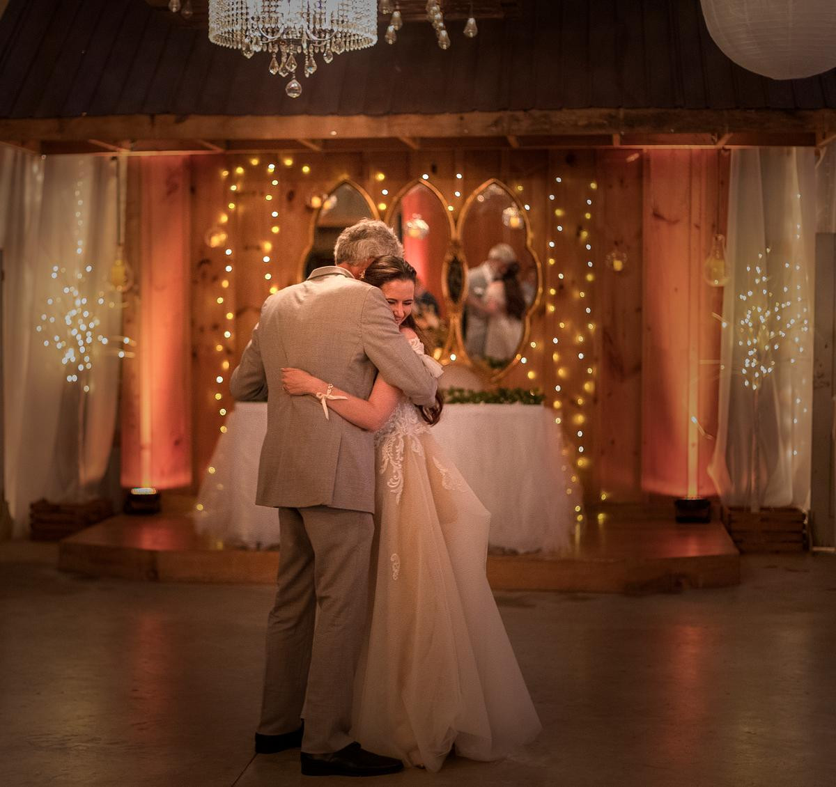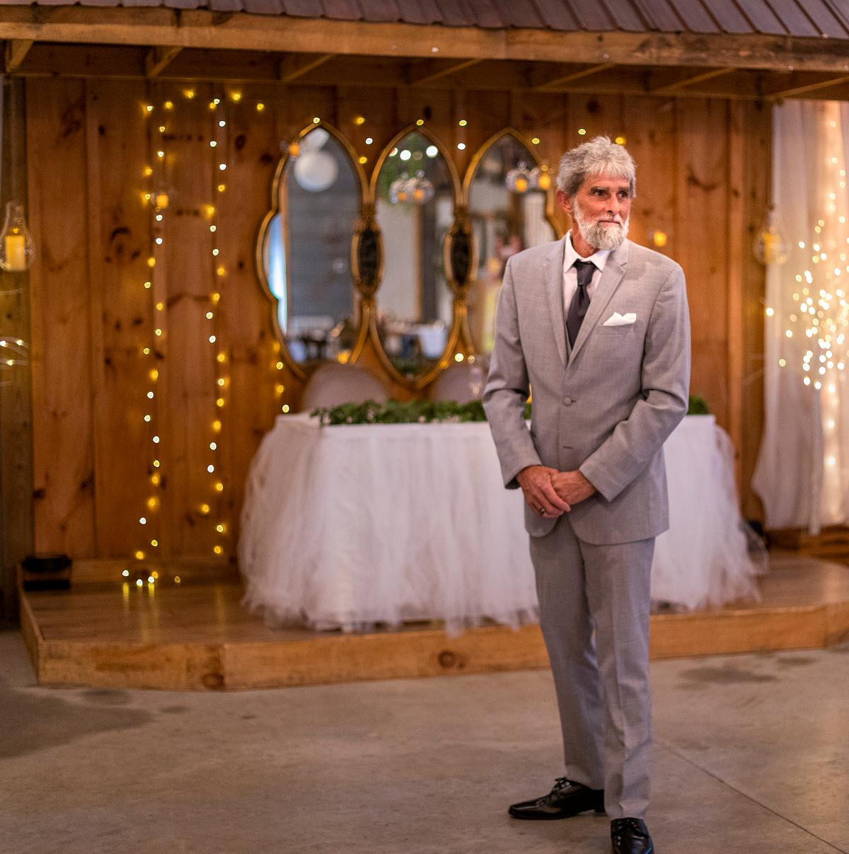 Sam planned a first look with her dad. I knew that we would have enough space on the dance floor to have her dad waiting for her and turn around and see his beautiful daughter. After that, we could take more photos of Sam and her bridal party.