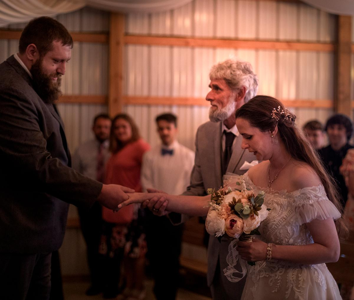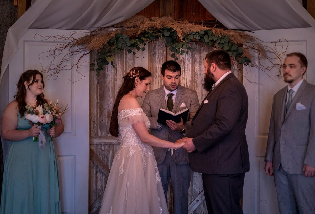 Before too long, it was time for the ceremony and all the pictures that come with it. The chapel at Chickberry Farms is a small, intimate, and romantic barn-type structure. The officiant was a friend of Michael, and he did a great job getting his friends married.Â