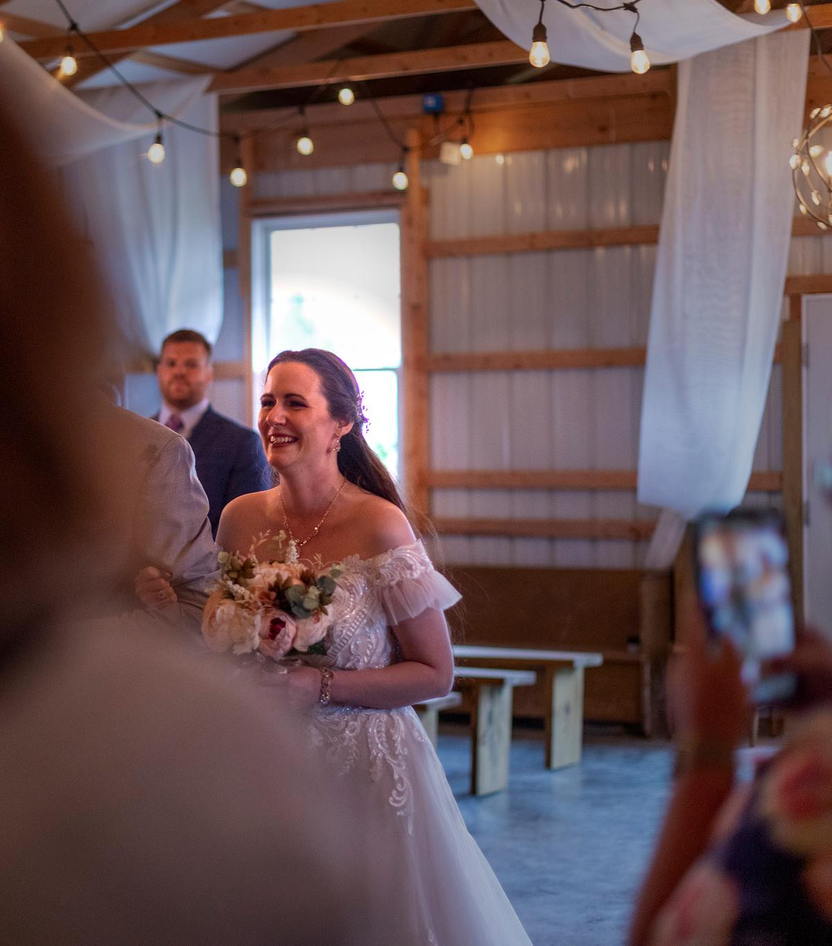 The plan was for an outside ceremony and for the cocktail hour and reception to be outside as well. Luckily, the owners of Chickberry Farms have made the venue ideal for any contingency. The warm and welcome interior of the barn and chapel made it easy to forget that a summer storm was brewing on the outside.