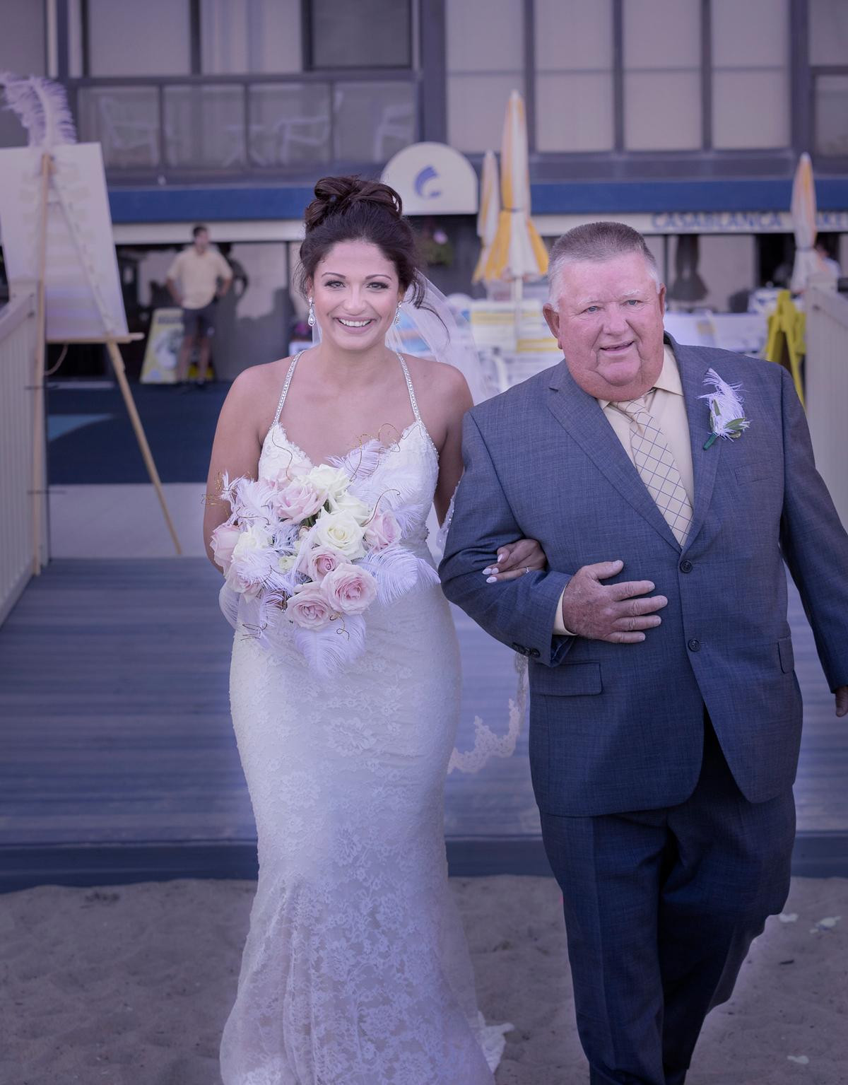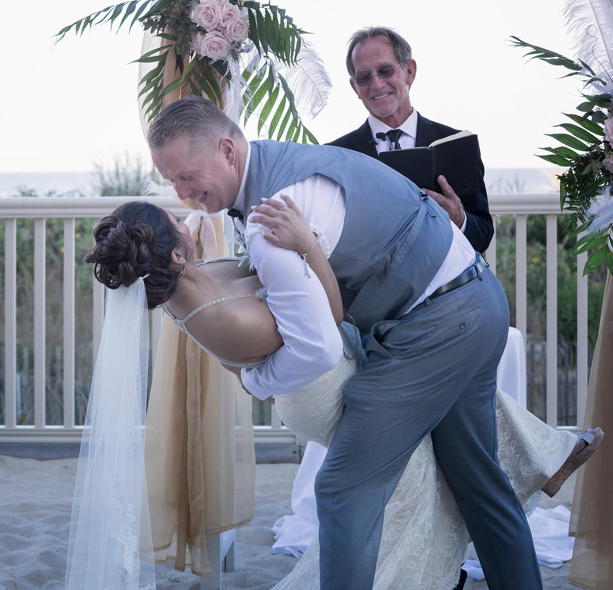 Since the day was so beautiful the ceremony was held on the beach. I remember the breeze coming off the ocean, taking away the humidity of the day. and the sun setting behind the hotel casting a welcome shadow over the area.Â