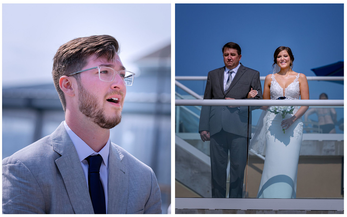 - Pro Tip: Plan your "First Look" on the outdoor pier or the sunset deck. The bay serves as a minimalist, sparkling background that keeps the focus entirely on your reaction.